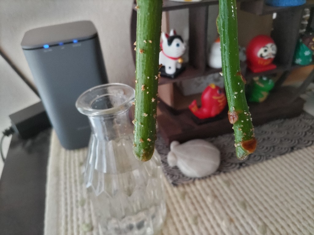 結論から言うとそのまま水差しで育てるのは難易度が高いです。水耕栽培の期間は切った枝からある程度根が伸びたくらいまでにしましょう。
