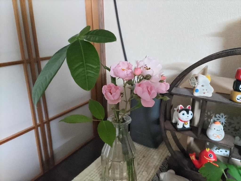 1メートルを超えたパキラを30cmくらいで3分割しました。その切り出した二つを水差しに入れて管理しています。