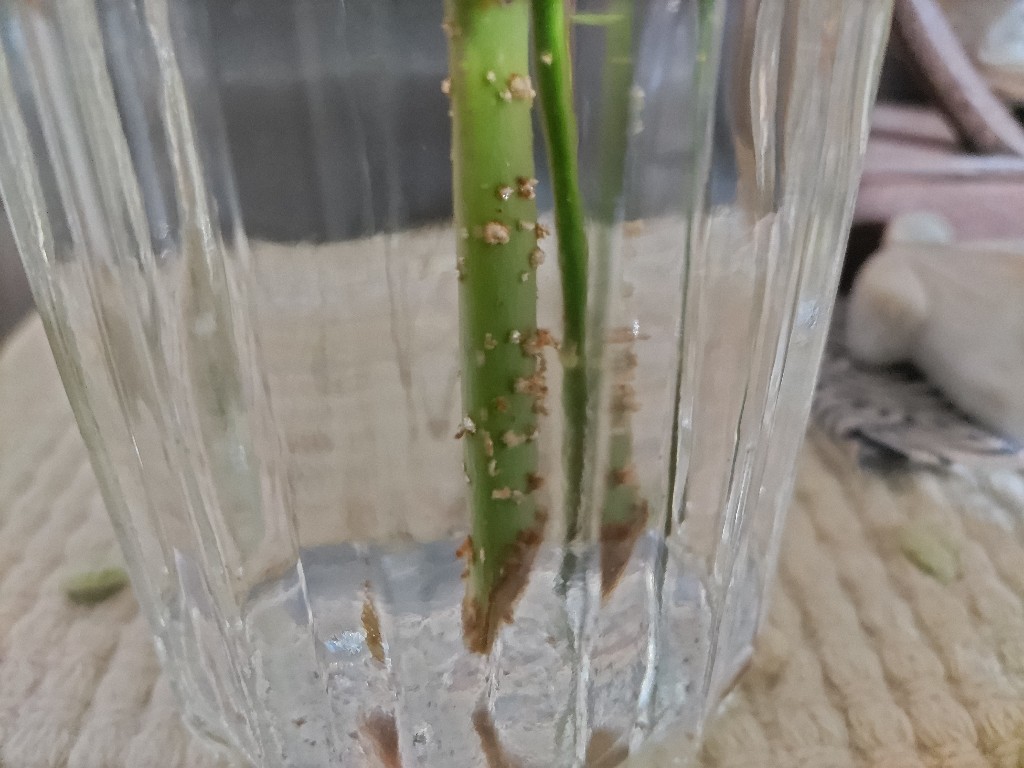 水に浸かっていた部分からは二つともポツポツした根が出ています。
